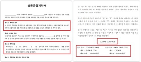 – Mandatory fields: Supplier, recipient, product transaction details (or transacted item), contract date, official seal, valid contract period