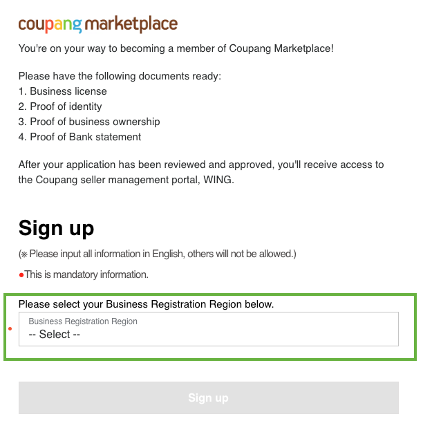 Signing up to Coupang Marketplace is a breeze – trust us. Even if it is your first time registering with our marketplace, we guarantee you will find it simple and straightforward. Before we tell you what you need, here is what we DO NOT require.